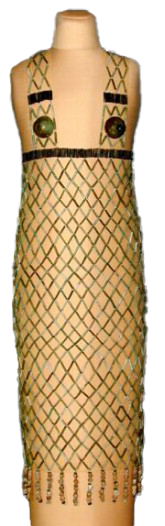 Das Perlennetzkleid aus dem Museum of Fine Arts in Boston (27.1548.1) ist das früheste erhaltene Beispiel für ein Kleidungsstück dieser Art. Es besteht aus etwa 7.000 Perlen. Sie wurden in einem ungestörten Grab einer Zeitgenössin des Königs Cheops